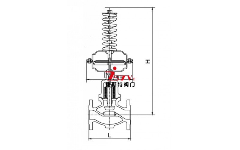 自力式壓力調節閥用于控制閥前壓力的調壓閥,閥的作用方式為壓開型,介質由箭頭方向流入閥體,另一路經冷凝器(介質為蒸汽時使用)冷卻后,被引入執行機構作用于膜片上,使閥芯隨之發生相應的位移,達到泄壓、穩壓之目的。如閥前壓力增加,作用于膜片上的力增加,壓縮彈簧,帶動閥芯,使閥門開啟度增大,直至閥前壓力下降到設定值為止。同理,如果當閥前力降低,作用在膜片上的力減小,由彈簧的反作用力,帶動閥芯,使閥門開啟度減小,直到閥后壓力上升到設定值為止。